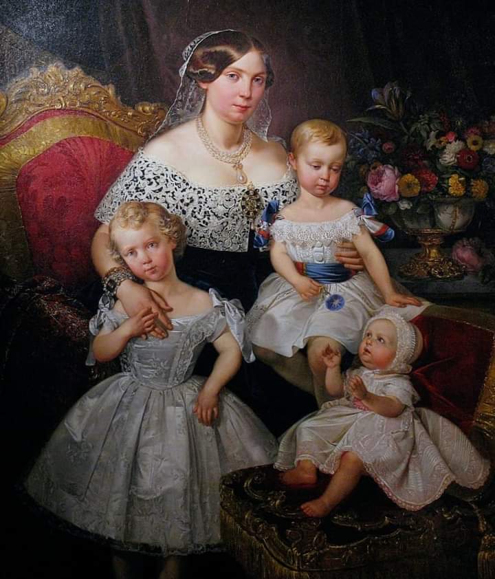 Louise Marie Thérèse d’Artois, Duchess of Parma with three of her children c.1849